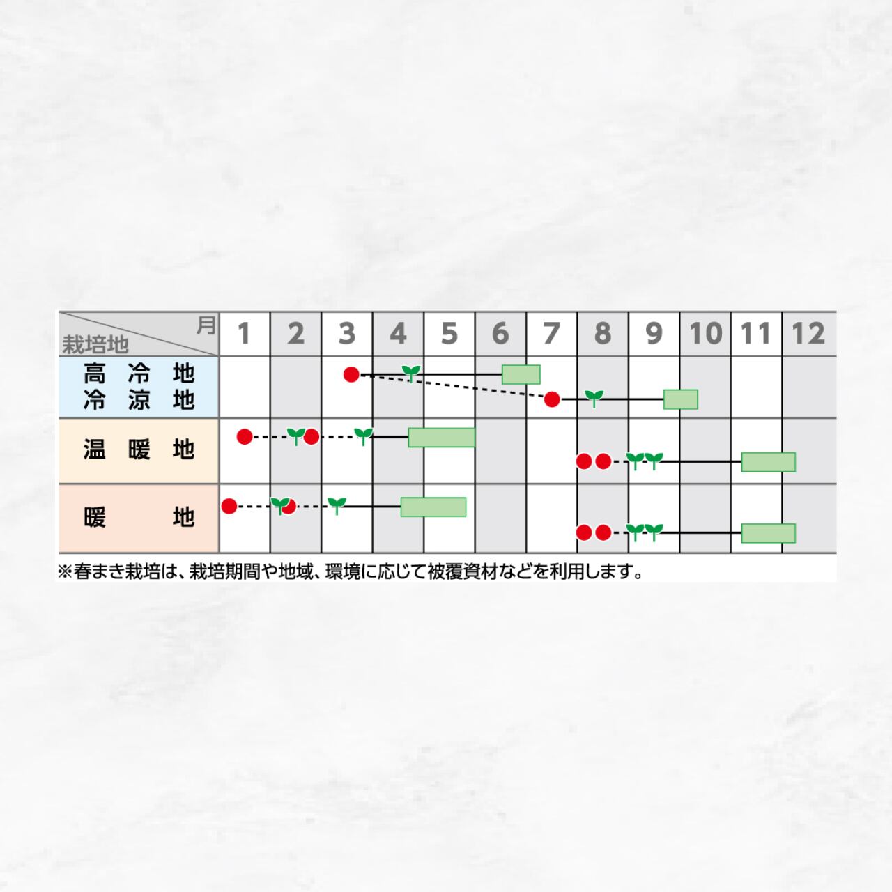 ●品種特性上低温期もしくは高温期での定植となるので、そのストレスに耐えられるよう、健全な苗の育成を心がける。