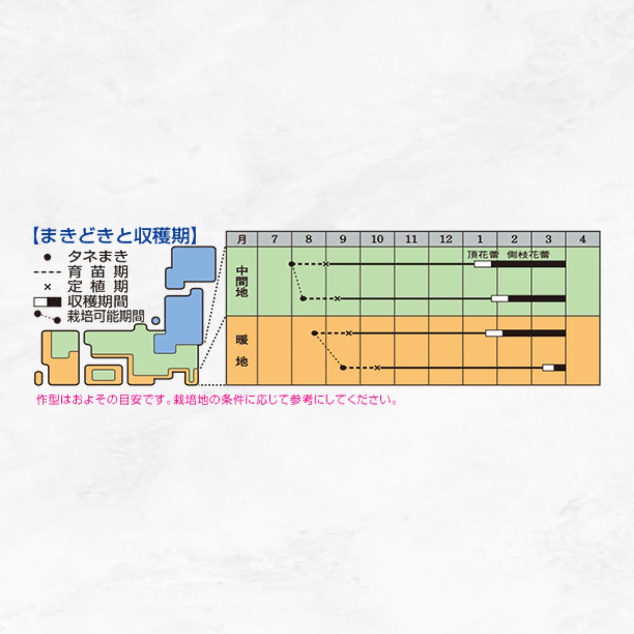 大型の側枝が基部から発生し、頂花蕾はもちろん、側枝花蕾どりにもできる多収種。