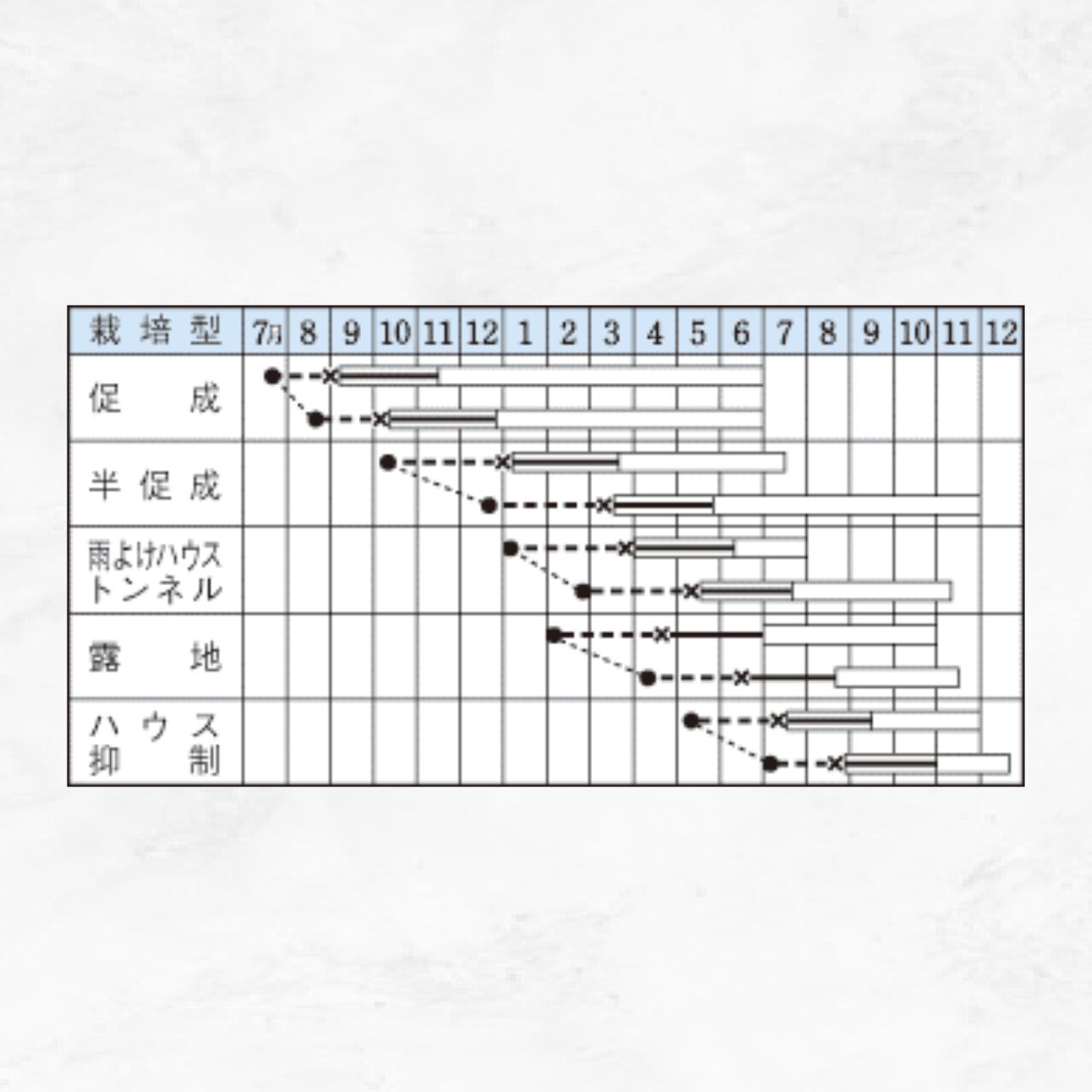 育苗中は適湿を保ち、昼間は気温26~28℃、夜間は14~16℃を管理目安に、徒長しないよう心掛ける。