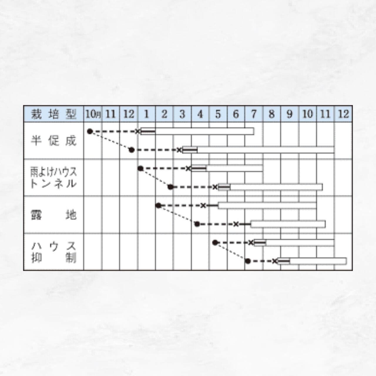 ●追肥は収穫始めより10~15日間隔に施すことを目安とし、草勢に応じて間隔を調整する。