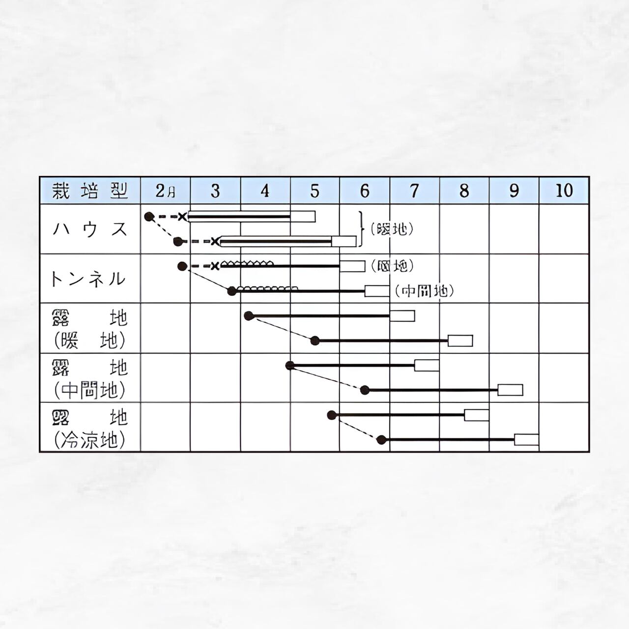 ●ハウスおよび早まきのトンネル栽培では、育苗が必要。