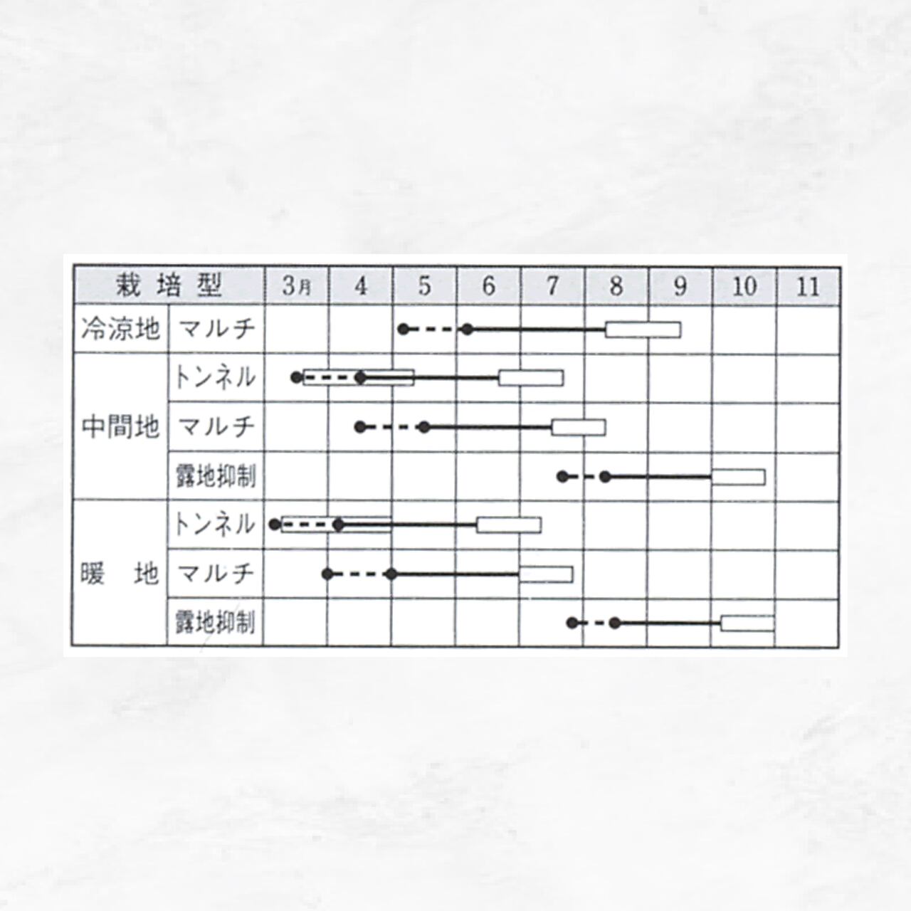 中間・暖地では、7月下旬~8月中旬まき10月収穫の露地抑制栽培も可能。