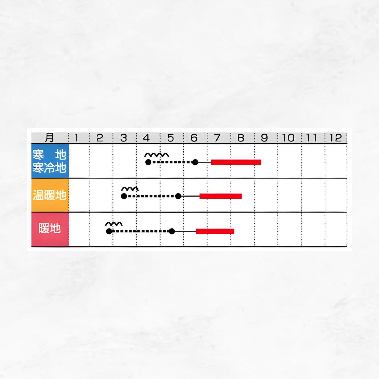 従来品種と比べて大きく、タネまきから約85日で収穫できます。草丈はコンパクトで栽培しやすく、比較的収穫期間も長いのでとり遅れの心配が少ないです。