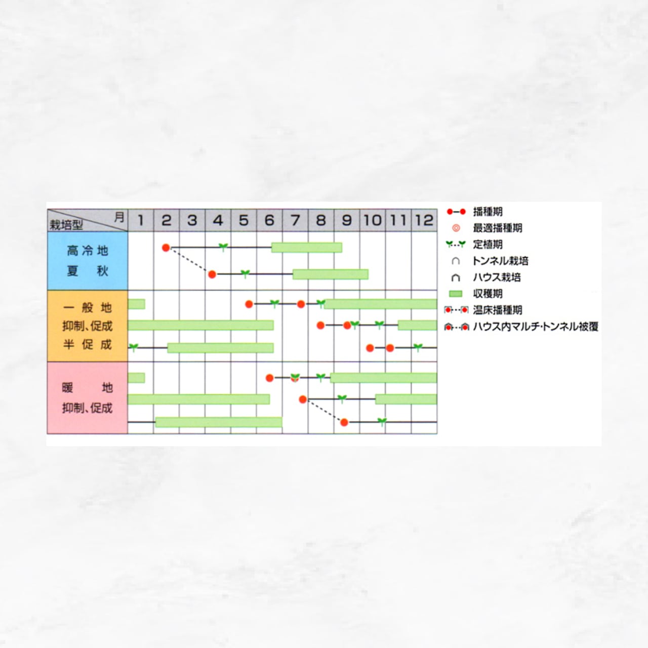 ●初期の草勢がやや強く、異常茎が発生することがあるので、元肥は控えめにする。また中~後半の草勢はややおとなしいので、タイミングよく追肥を行うことが大切。