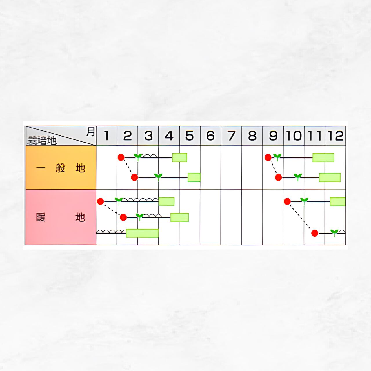 ●温暖地・暖地の冬春どり作型に適します。土壌はとくに選びませんが、酸性土壌では生育がわるくなるので注意する。