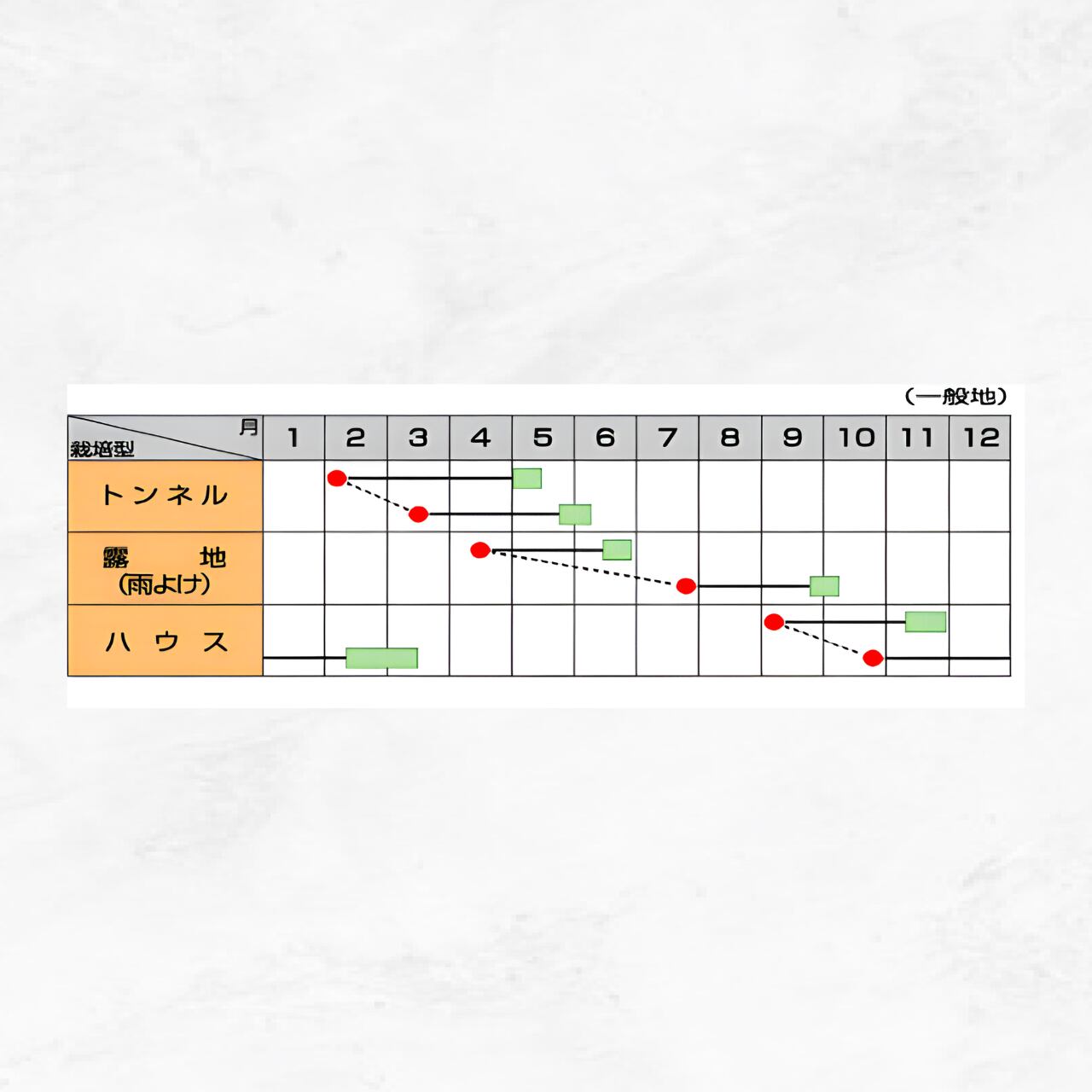 ●耐暑性、耐寒性があり、オールシーズンいつでもまける。低温伸長性がよいため、とくに秋~春まきに能力を発揮する。