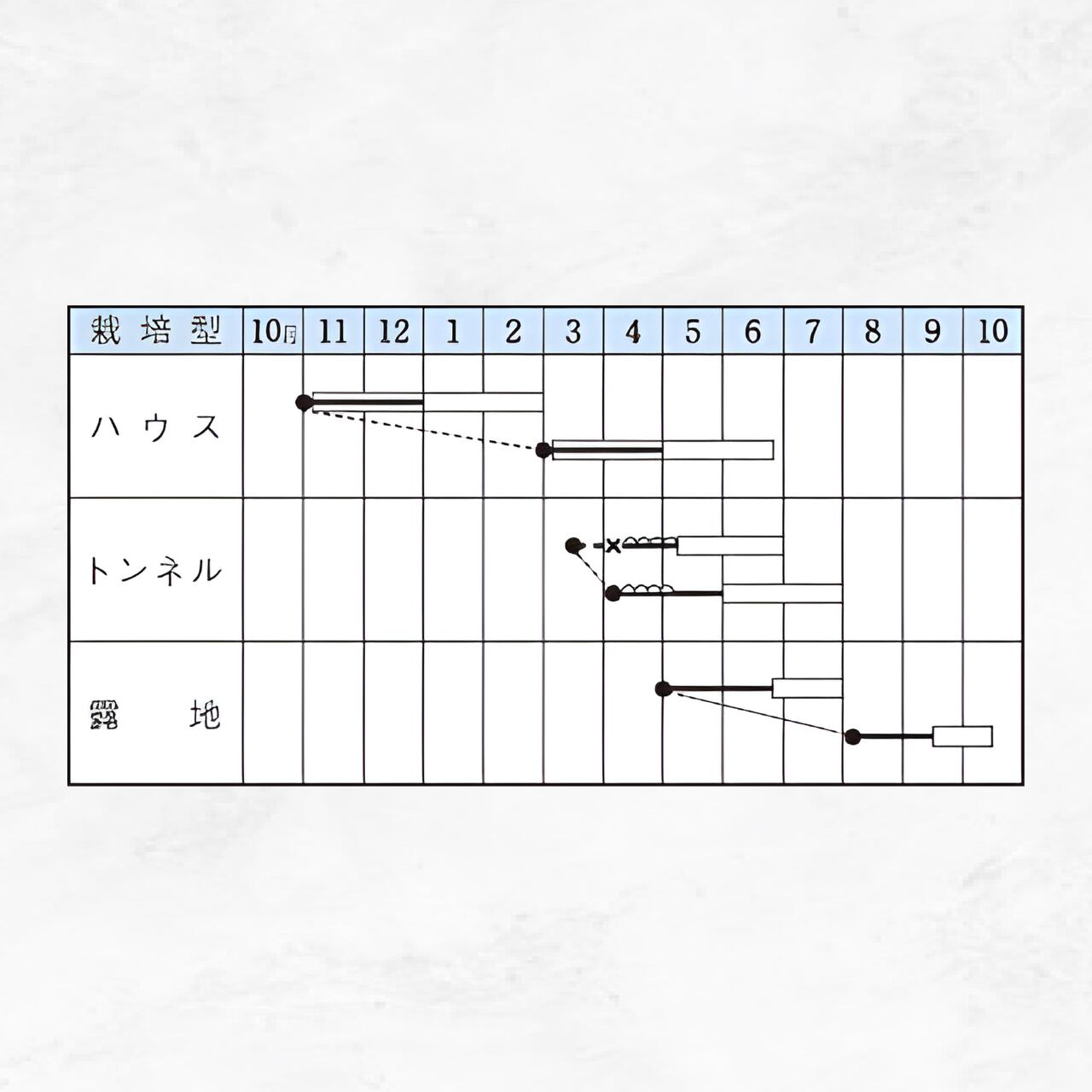●草勢旺盛で環境適応性にすぐれ、高温期はもちろん、低温少日照下でも安定した栽培ができる。