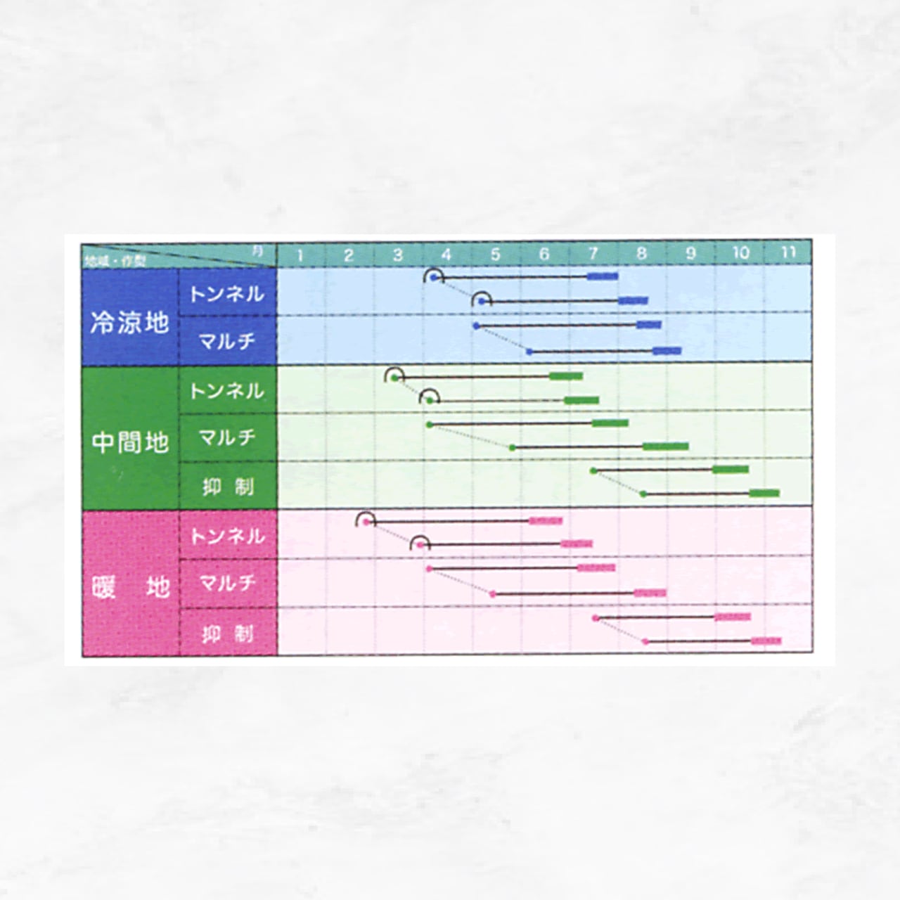●初夏~盛夏まき、秋収穫の抑制栽培も可能(暖地)。