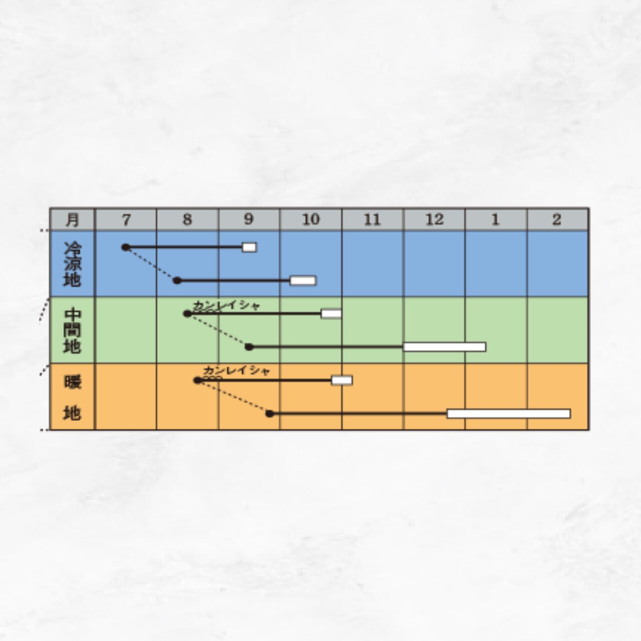 ●カブは本来、冷涼な気候を好むため、むやみな早まきをせず、立地条件に応じた播種適期をつかむことが大切。特に気温の高い8月まきでは、ウイルス病の防除のためにも、寒冷紗やサンサンネットで被覆し、株間もやや広めにすることが望ましい。