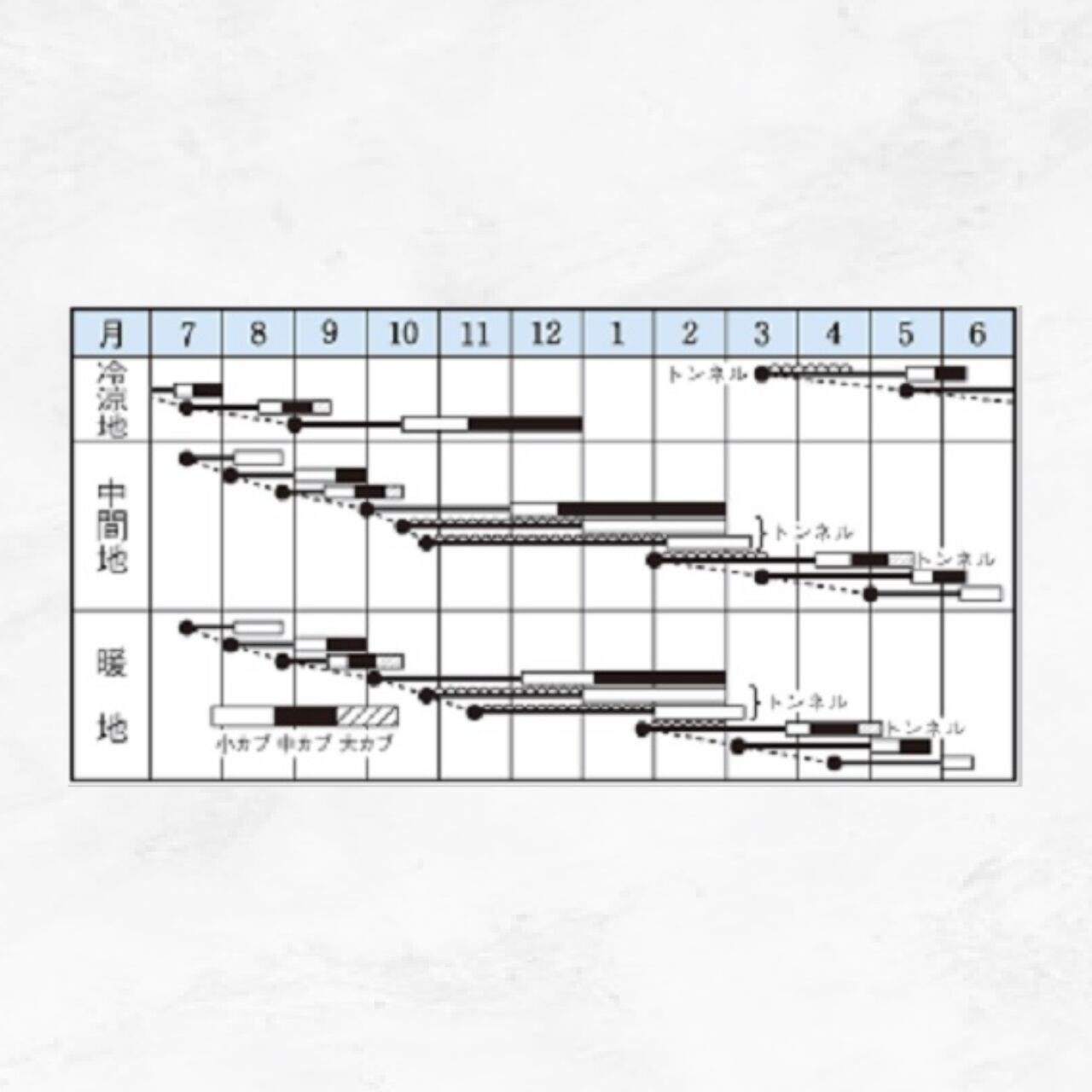 ●形状は早くから整い、厚みのある扁円でそろいがよい。