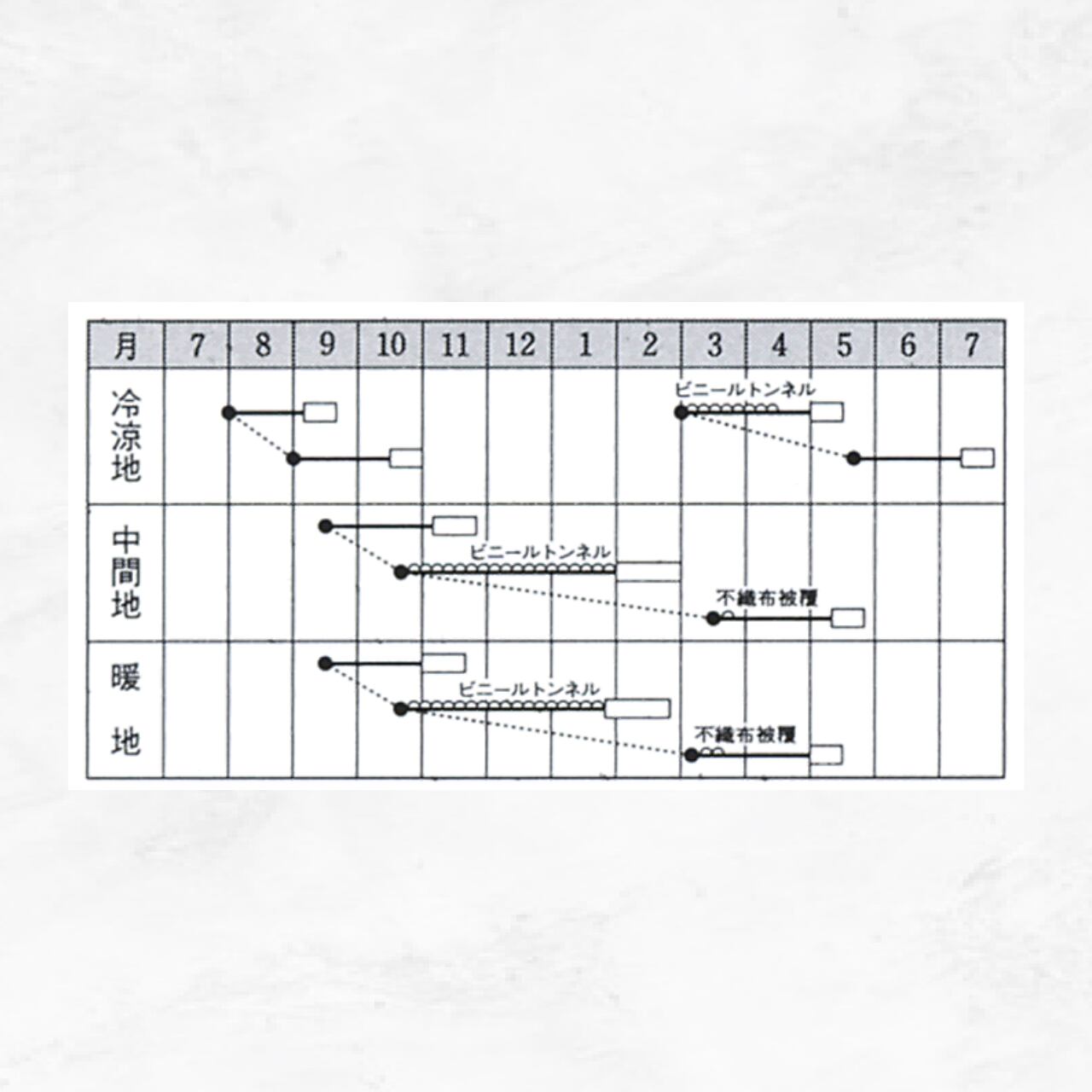 ●低温期の栽培ではトンネルなどによる十分な保温と、適湿を保つことに注意する。特に肥大期に過乾状態が続くことは禁物。