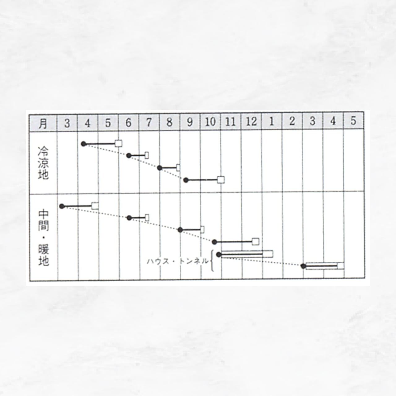 ●厳寒期栽培では、生育が緩慢となり株が太りすぎて荷姿が見劣りするので、必ず温度が確保できる施設栽培とする。