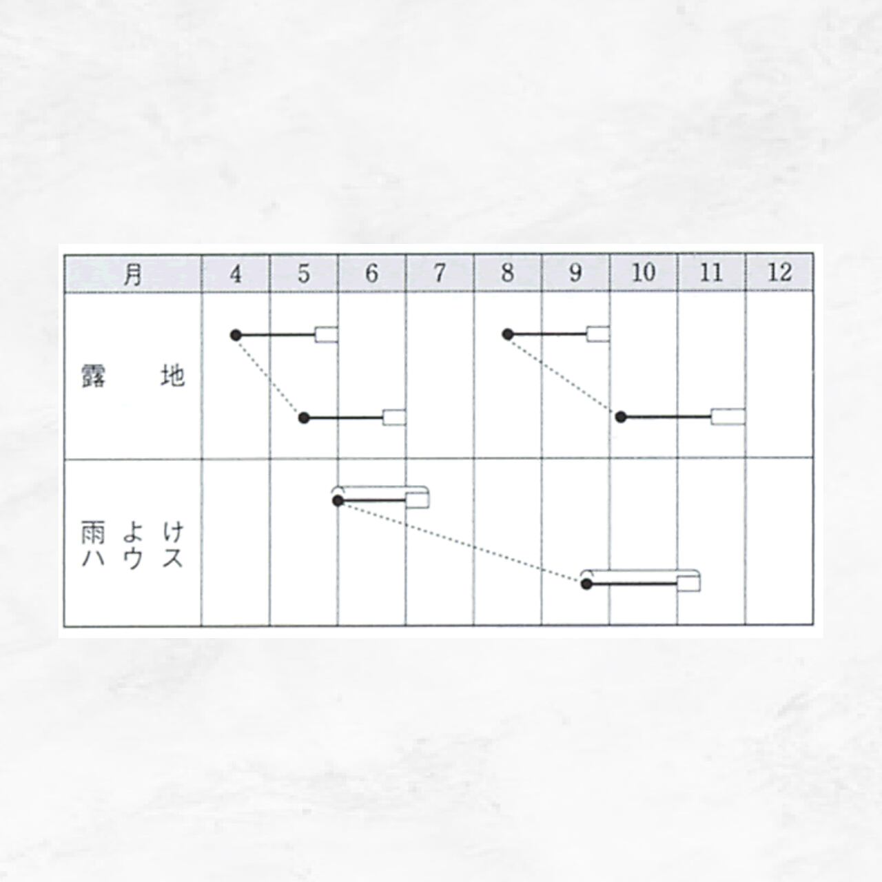 ●良品収穫には、夏季は雨よけ、冬季はハウス栽培が適当。冬季の栽培では、不織布などの被覆資材を使用して保温を行い、生育促進を図る。