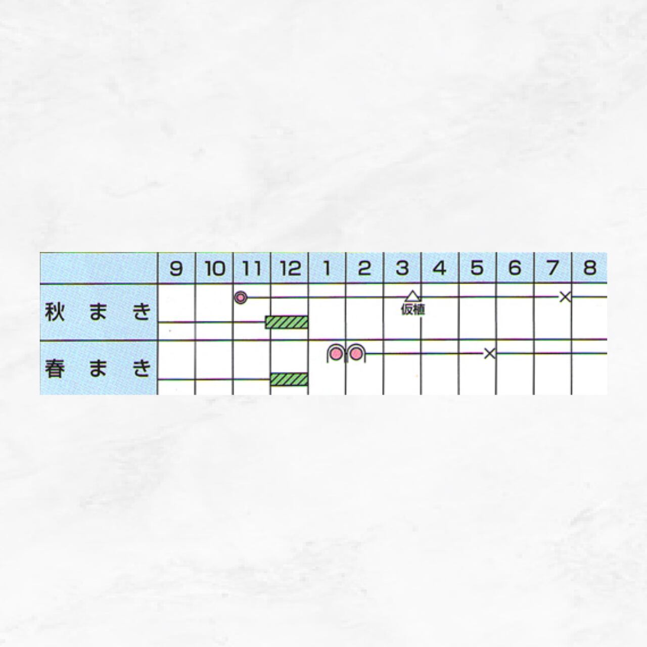 ●タネまきは春・秋何れもまき床に行い育苗後株間15cm位に定植する。