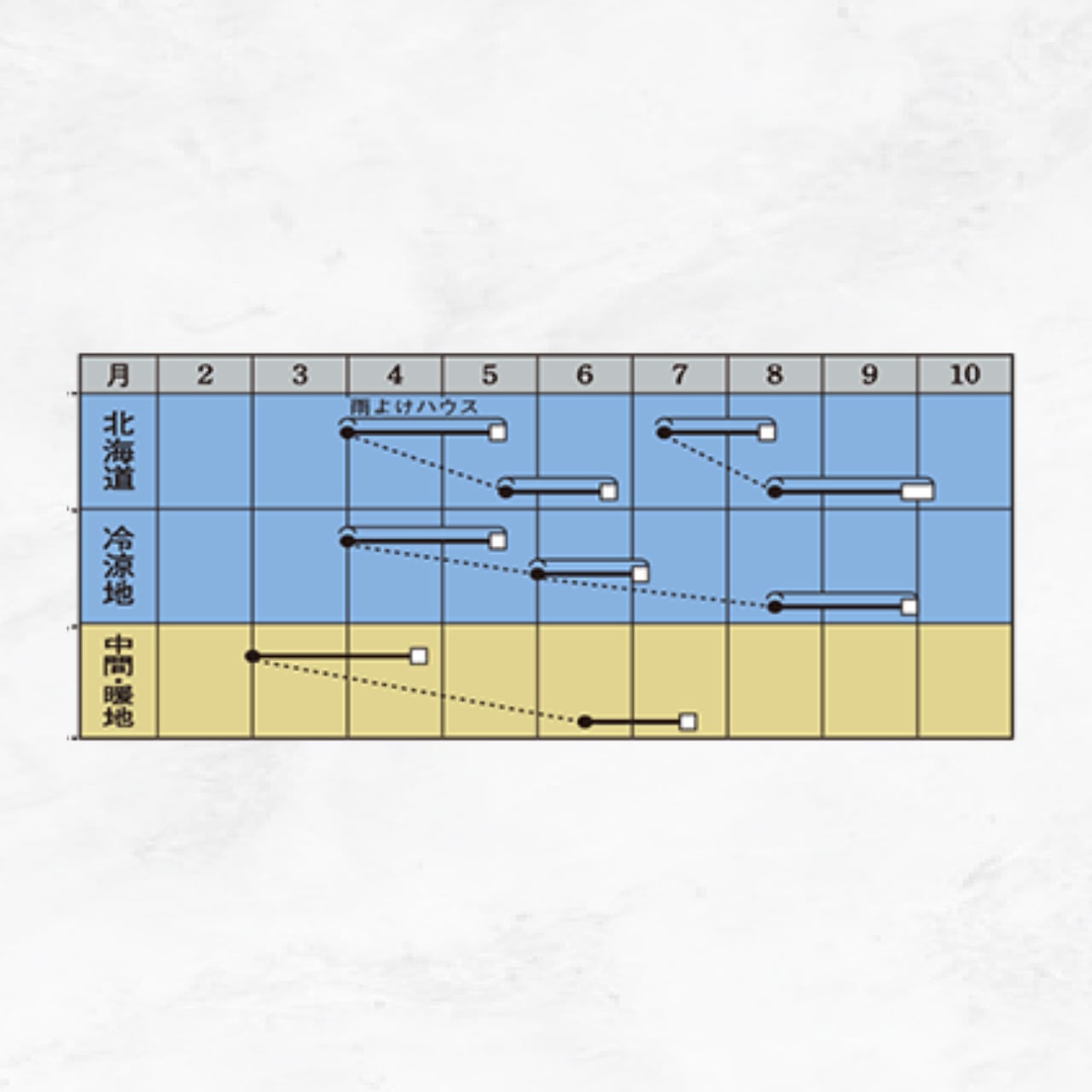 ●発芽までは適湿を保ち、乾燥や過湿を避ける。特に夏場の乾燥は発芽不良の原因となるため、極端な浅まきを避け、適宜潅水を行う。地温が高くなる夏場の栽培では、遮光などであらかじめ地温を下げてから播種を行う。